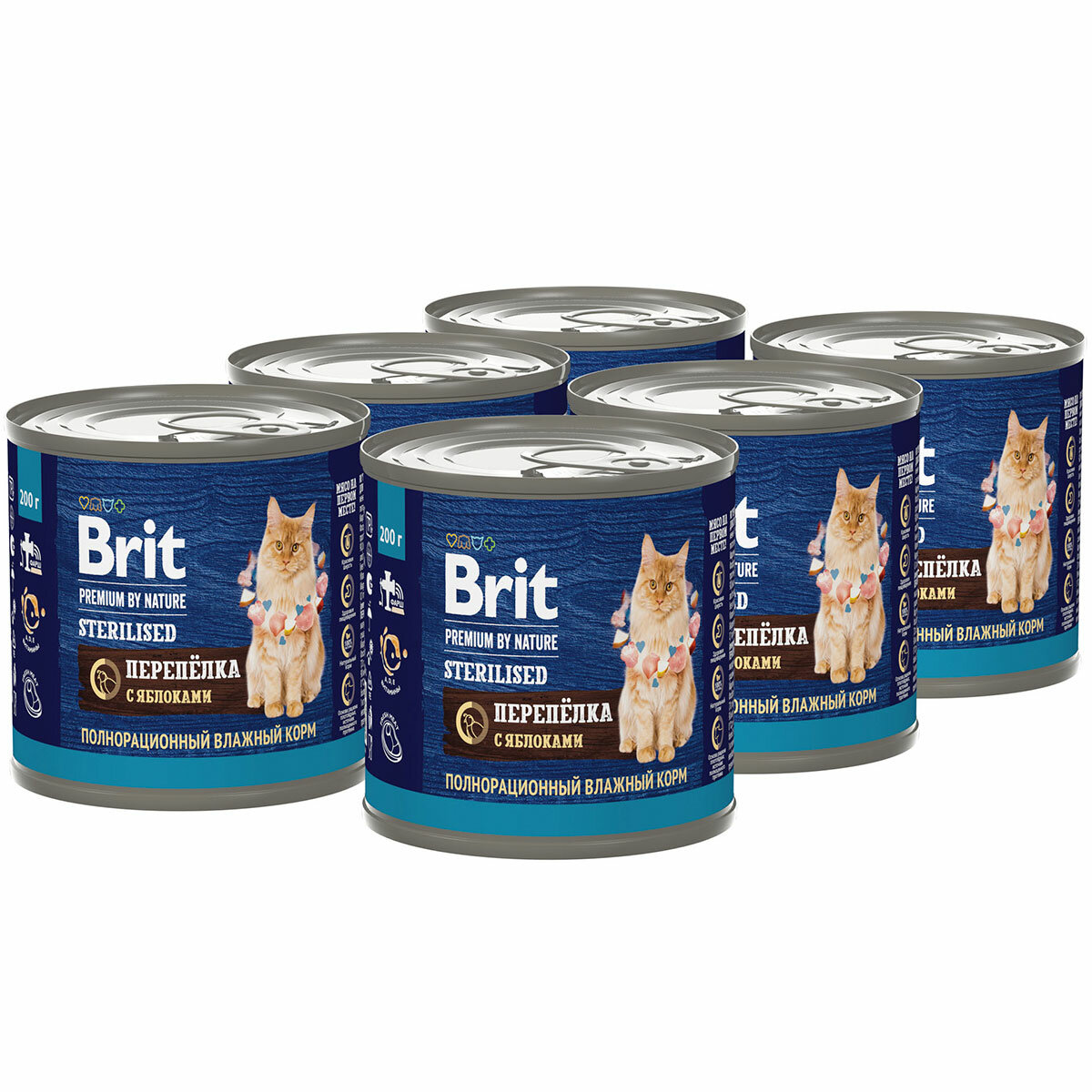 Корм для кошек BRIT Premium by Nature для стерилизованных, мясо перепёлки с яблоками банка 200г
