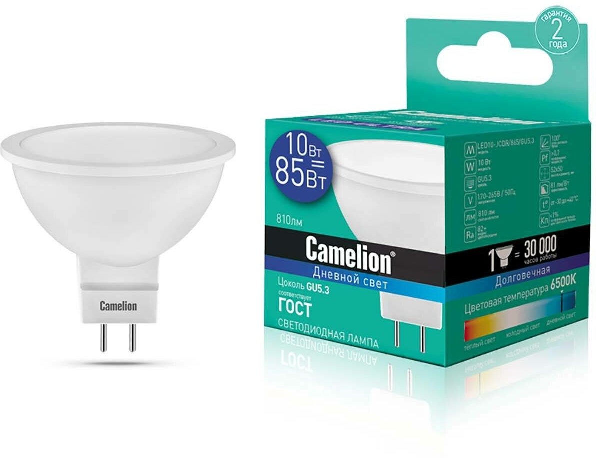 Набор из 10 светодиодных лампочек Camelion LED10-JCDR/865/GU5.3 интересное: