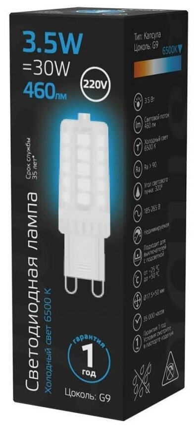 Лампа светодиодная Gauss G9 3,5W 6500K прозрачная 107009305 интересное: