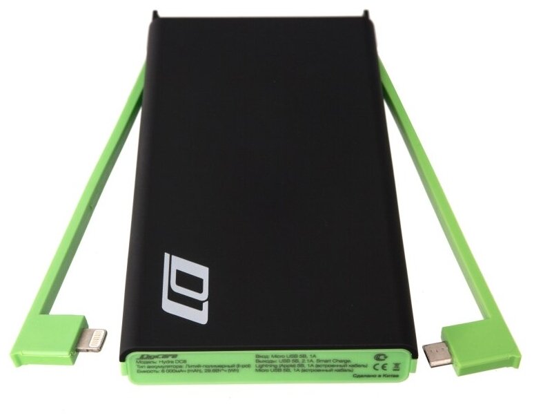 Внешний аккумулятор DIGICARE Hydra DC8 Black/Green, 8000мАч, Smart, встроенные Lightning и USB кабели, USB 2A интересное: