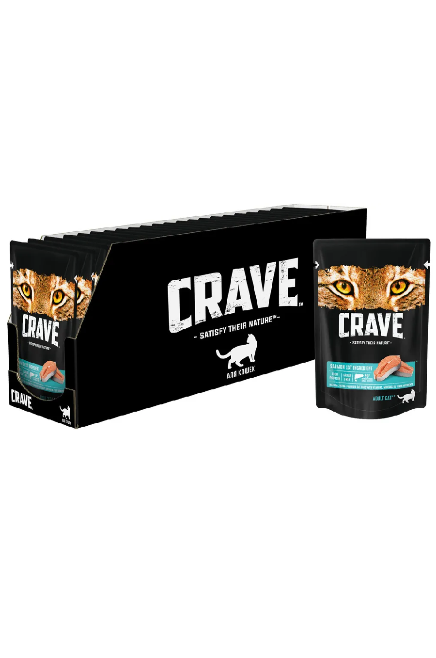 Купить CRAVE Корм консервированный для взрослых кошек Лосось (пауч) 30х70г