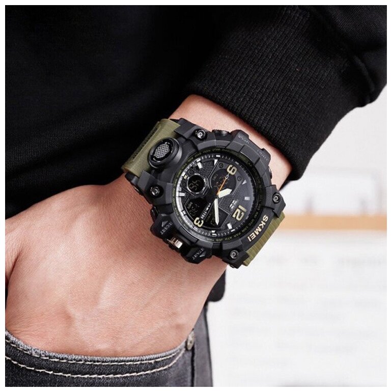 Тактические военные наручные часы Skmei 1155B Хаки интересное: