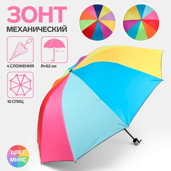 Купить Зонт механический «Радужное настроение», 4 сложения, 10 спиц, R = 52 см, цвет микс