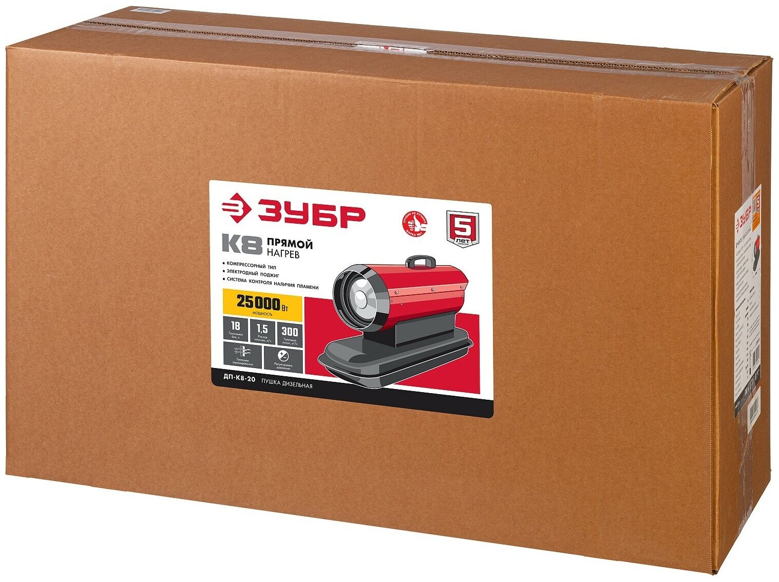 Дизельная тепловая пушка ЗУБР ДП-К8-25, 25 кВт прямого нагрева
