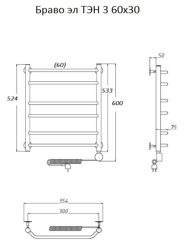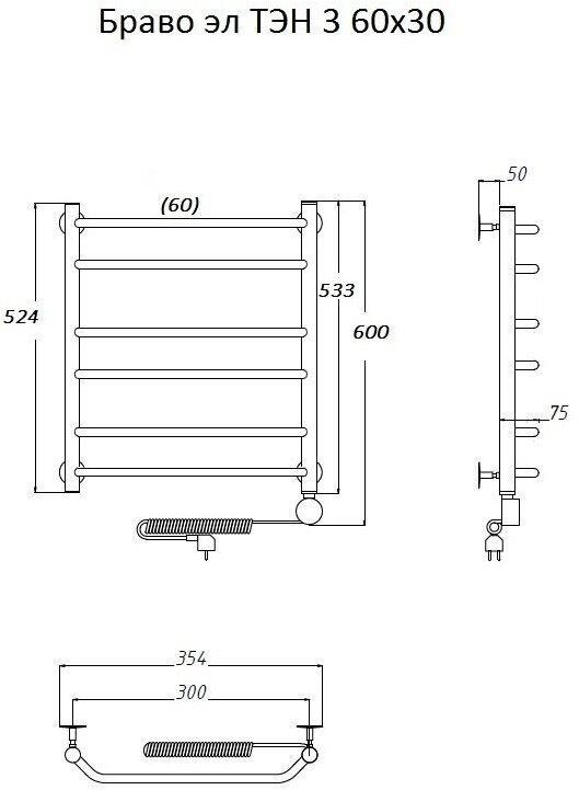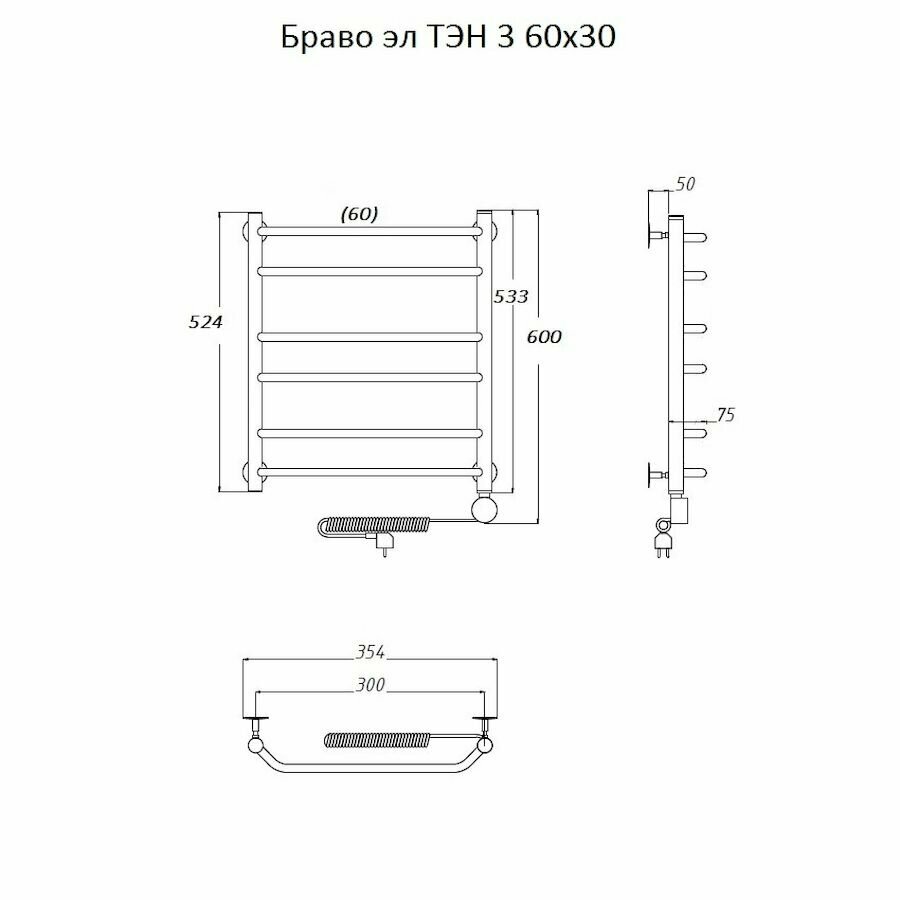 Купить Полотенцесушитель Браво эл ТЭН 3 60*30 (ЛЦ4)