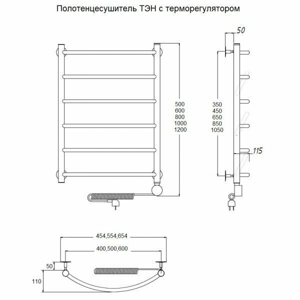 Полотенцесушитель электрический Тругор эл ТЭН 3 60х30