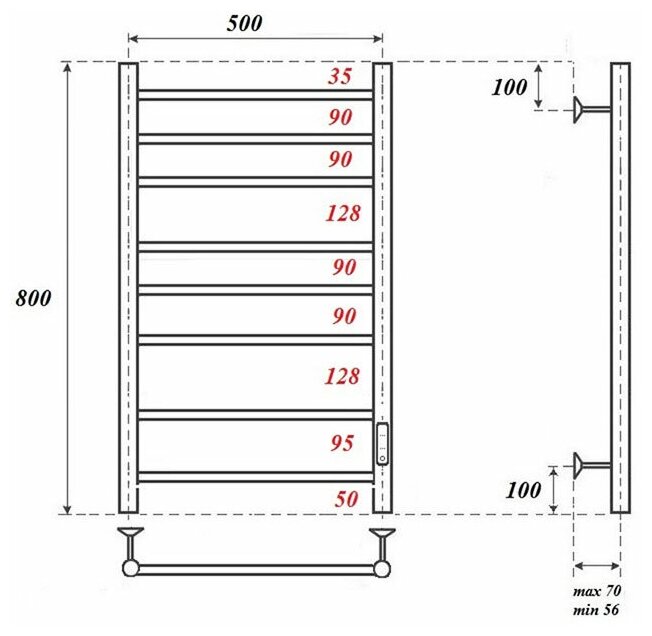 Полотенцесушитель электрический Point Серии Аврора П8 500x800 диммер справа, белый PN10858W интересное: