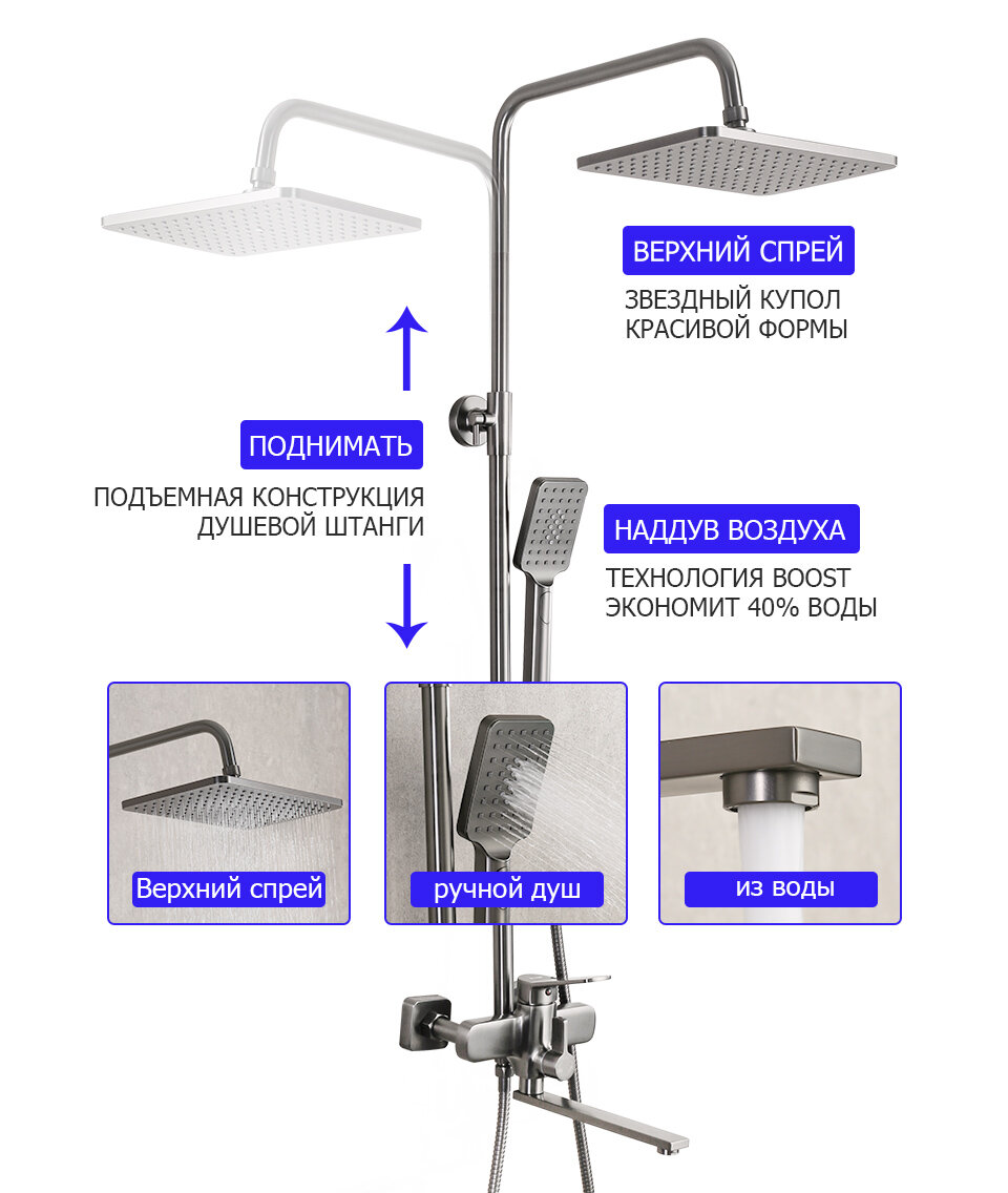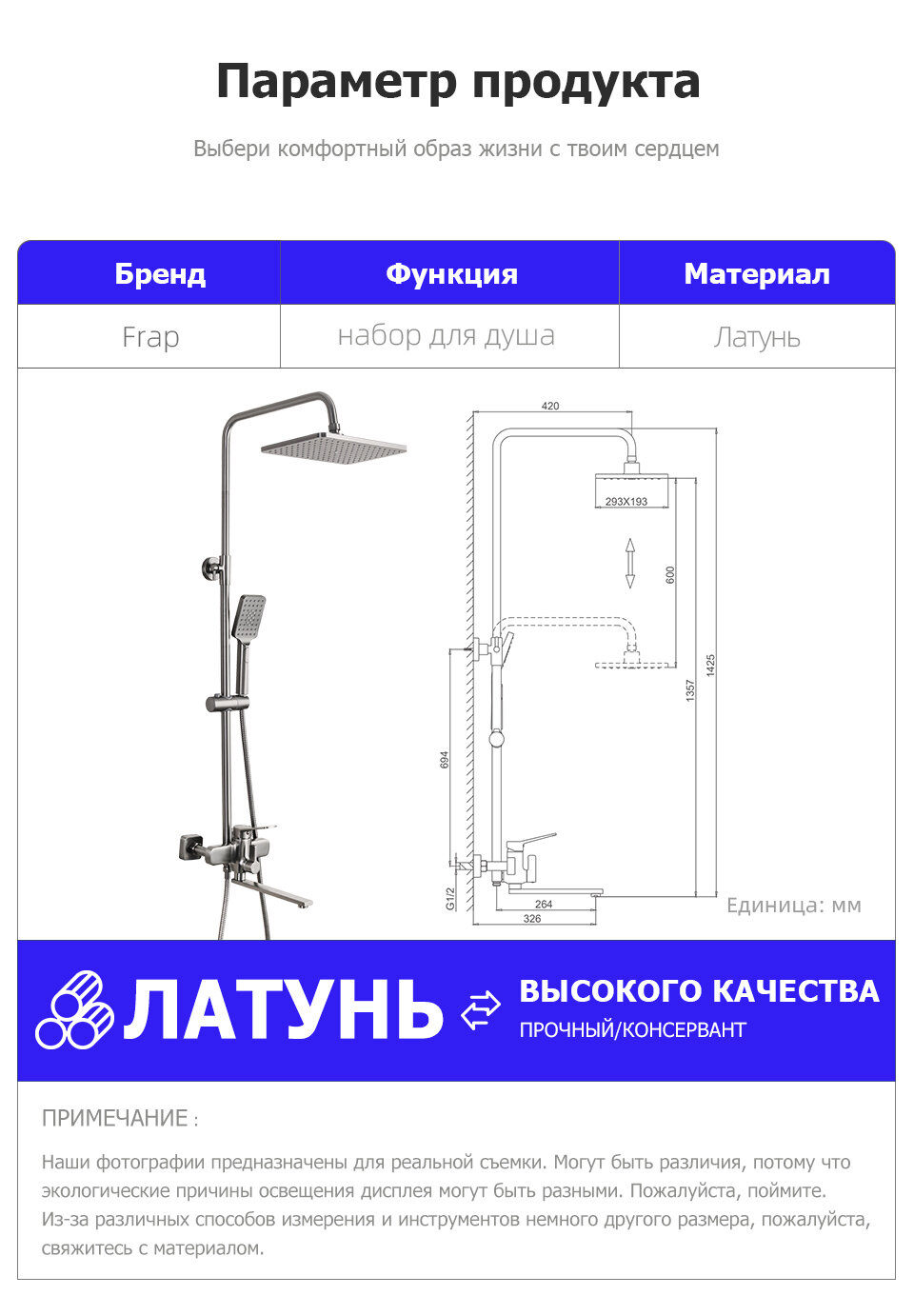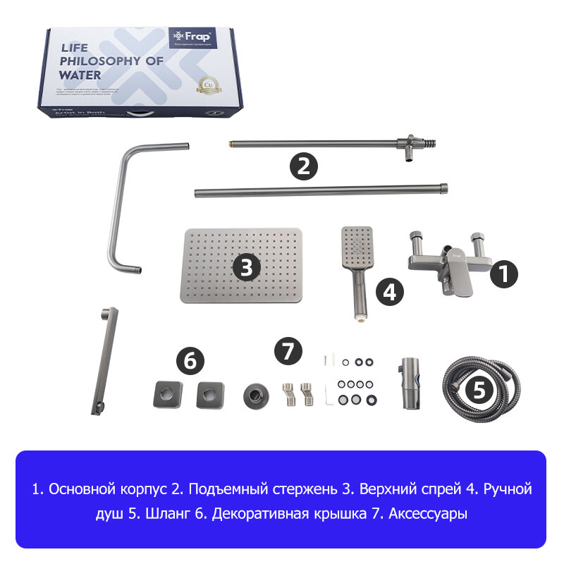 Душевая стойка Frap F2462-9 оружейная сталь интересное: