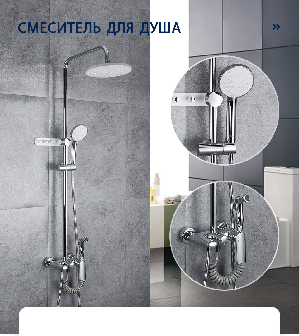 | Комплектация | Смеситель; Душевая лейка; Шланг для душа; Верхний душ; Душевая стойка; Крепление; Аэратор; Дивертор; Душевая стойка |
