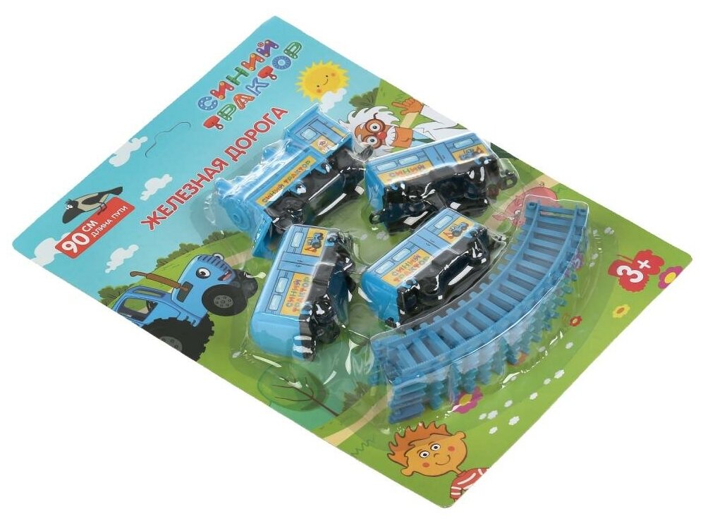 Железная дорога Синий Трактор на батарейках, длина 90см на блистере 18*30*5см