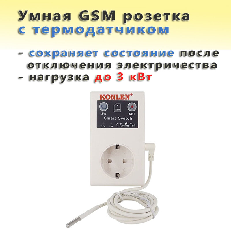 Умная GSM розетка SC1-GSMV 16A Konlen с датчиком температуры (управление по смс и звонкам до 3 кВт) интересное: