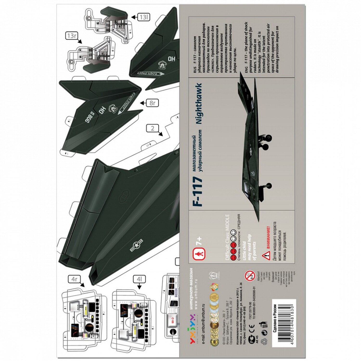 Сборная модель Умная бумага Самолет Night Hawk F-117, арт.183