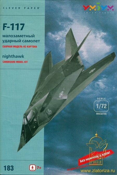 Сборная модель Умная Бумага "Авиация", Малозаметный ударный самолет F-117, масштаб 1:72