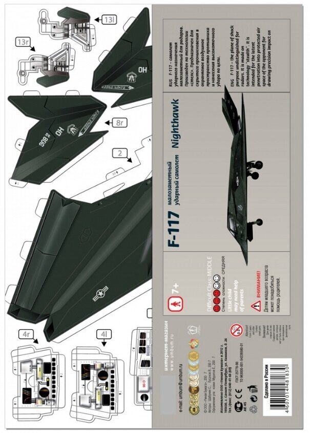 Купить Сборная модель из картона Малозаметный ударный самолет F-117 №183 темно-зеленый