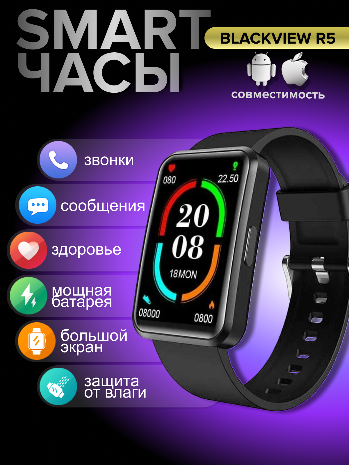 Смарт-часы Blackview R5 Black интересное: