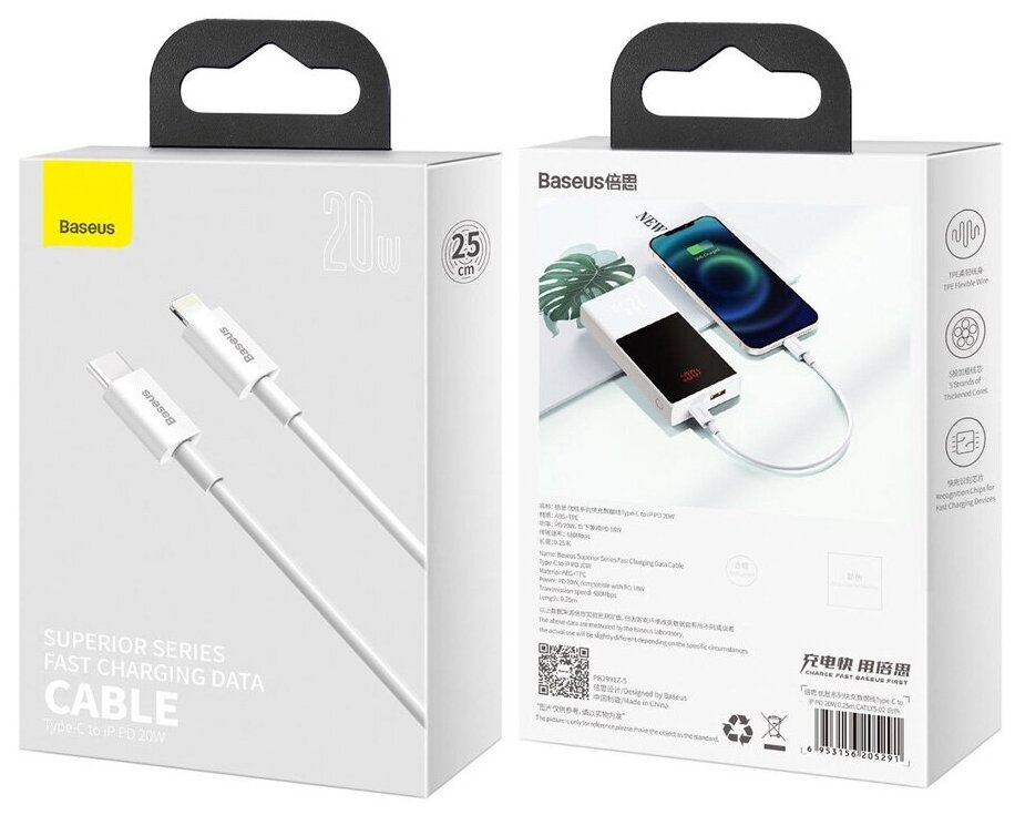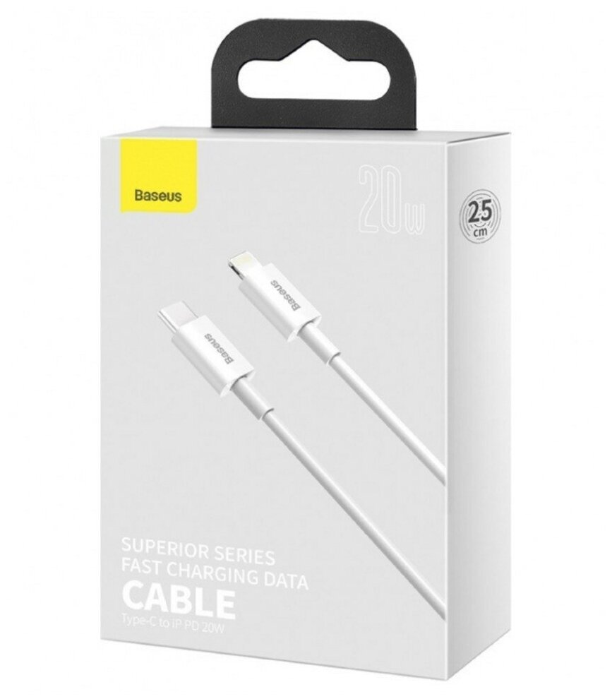 Аксессуар Baseus Superior Series Fast Charging Data Cable Type-C - Lightning PD 20W 0.25m White CATLYS-02