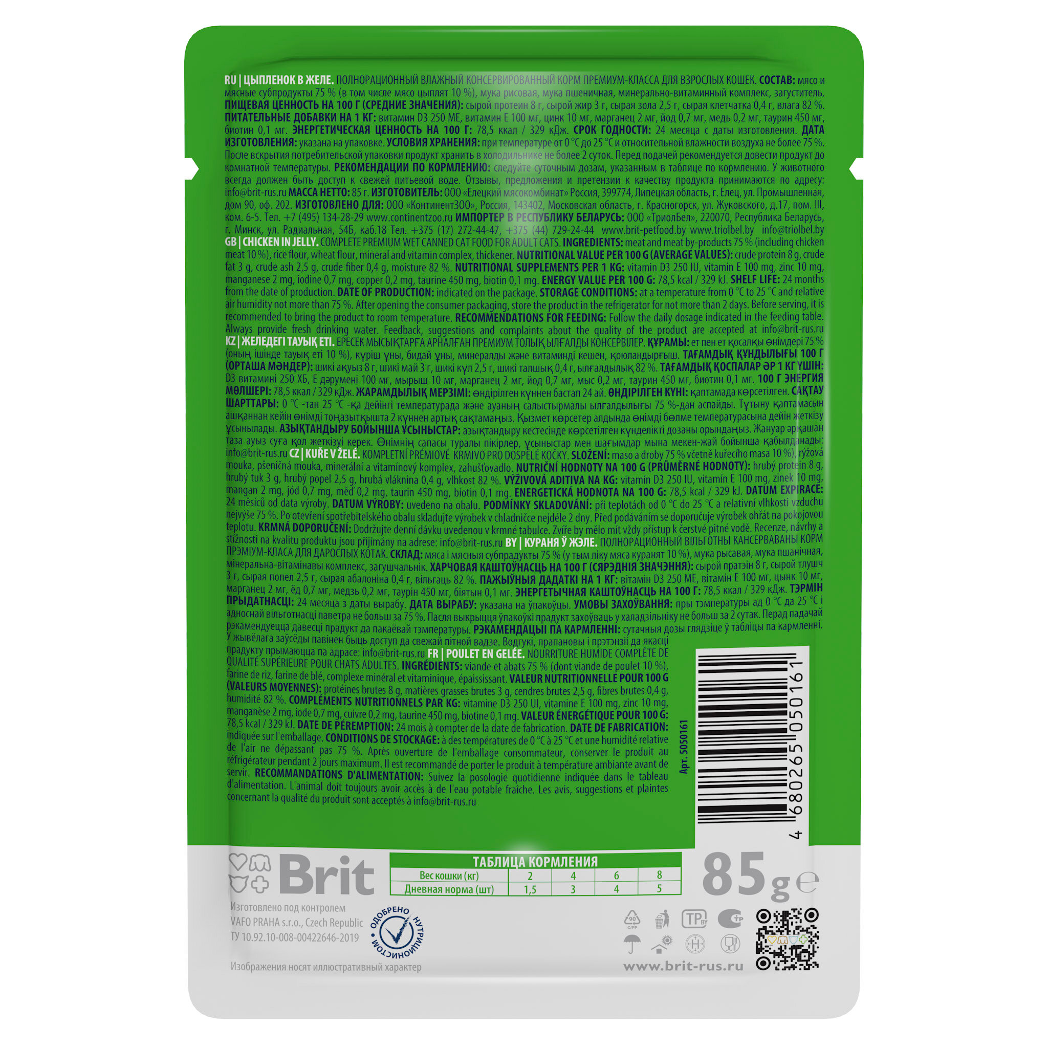 Влажный корм для кошек Brit Premium, цыпленок, 14 шт. х 85 г (кусочки в желе) интересное:
