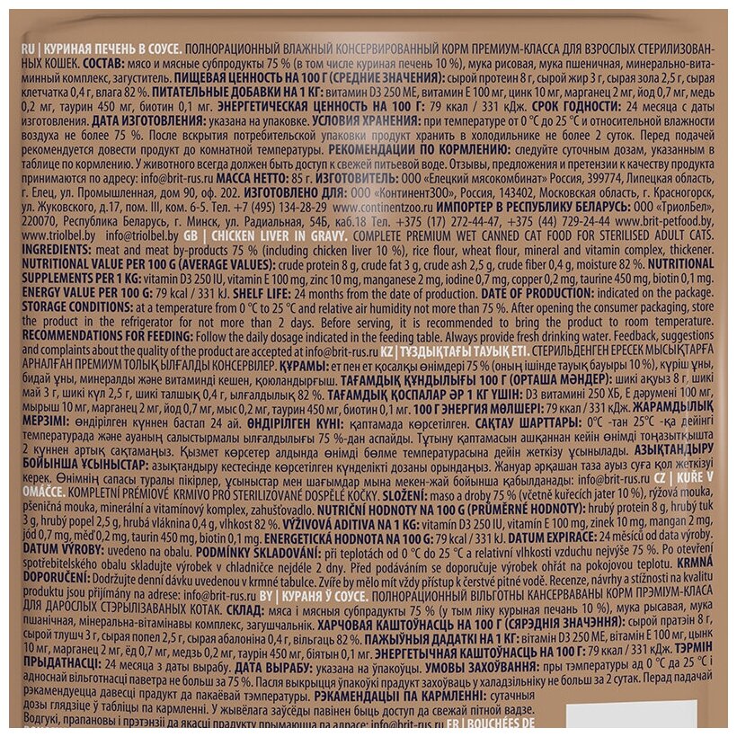 Пауч Brit Premium для взрослых стерилизованных кошек куриная печень в соусе 85г интересное: