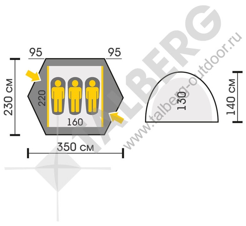 | Особенности | УФ-защита / вентиляционные отверстия / ветрозащитная/снегозащитная юбка / внутренняя палатка / огнеупорная пропитка / проклеенные швы / усиленные углы |