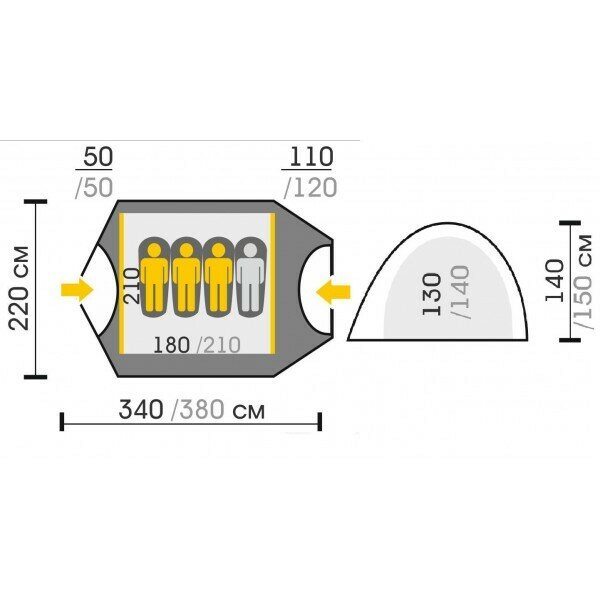| Водостойкость тента/дна | 5000 / 7000 мм в.ст. |