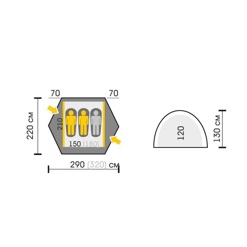 | Габариты внешней палатки(ДxШxВ) | 290x220x130 cм |