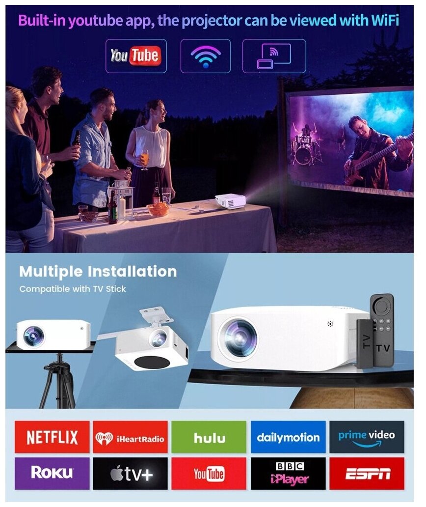 Проектор мультимедийный Unic Y2 Wi-Fi mini UPG / Портативный светодиодный видеопроектор HD 720 / Домашний кинопроектор для фильмов и дома интересное: