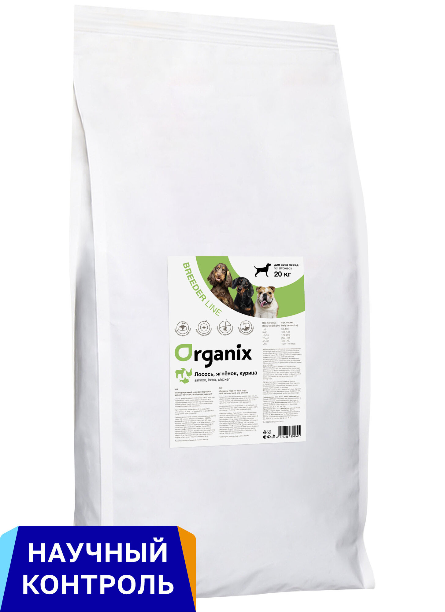 Купить ORGANIX BREEDER LINE ADULT DOG SALMON, LAMB & CHICKEN для взрослых собак всех пород с лососем, ягненком и курицей (20 кг)