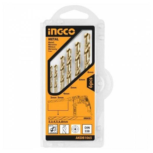 Набор сверел по металлу 2*49мм, 3*61мм, 4*75мм, 5*86мм, 6*93мм, 8*117мм INGCO AKDB 1065