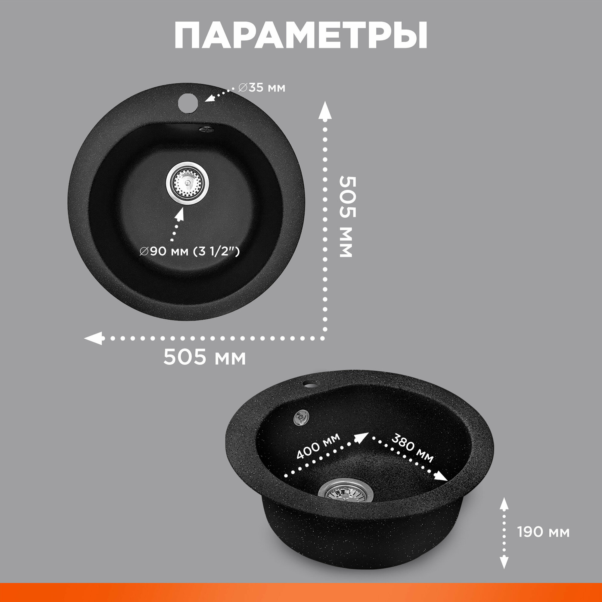 СохранитьМойка кухонная из искусственного камня GOLD черный 505х505 mm, AV Engineering (AV510000GBKA) интересное: