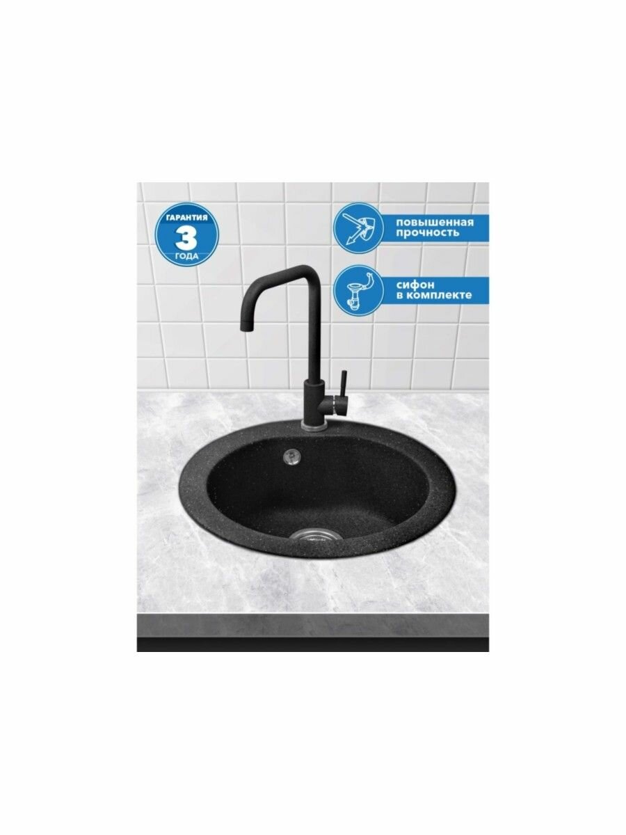 Мойка для кухни каменная врезная черная круглая AV ENGINEERING Richi (AV510510RBKA)