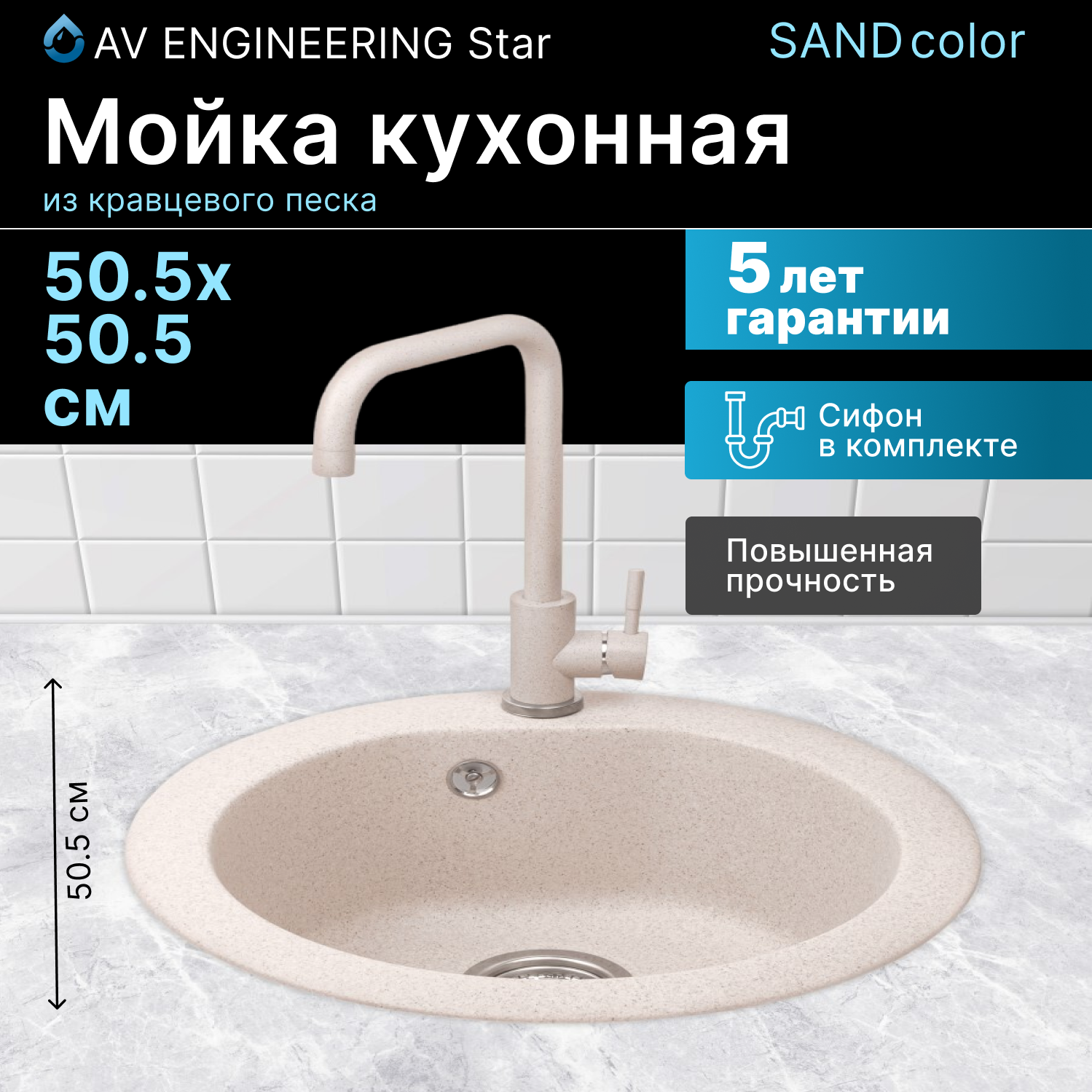 СохранитьМойка кухонная из искусственного камня GOLD песочный 505х505 mm, AV Engineering (AV510000GSNA) интересное: