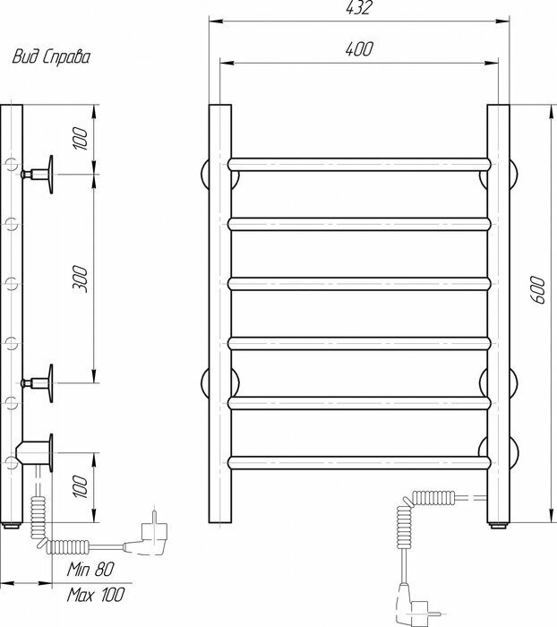| Дополнительная информация | Полотенцесушитель в сборе Комплект для скрытого подключения 1 шт. Кронштейн к стене - 4 шт. Паспорт на изделие |