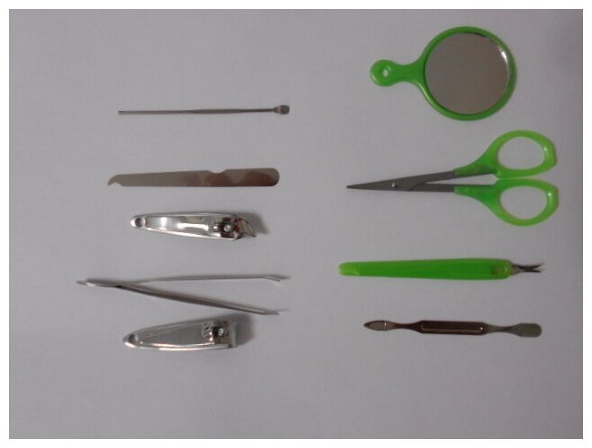 | Состав набора | апельсиновая палочка, книпсер, кусачки для кутикулы, кусачки для маникюра, ножницы, пилка, пинцет, пушер для кутикулы |