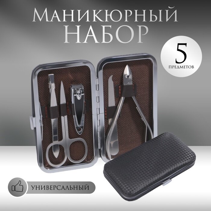 Набор маникюрный, 5 предметов, в футляре, цвет чёрный