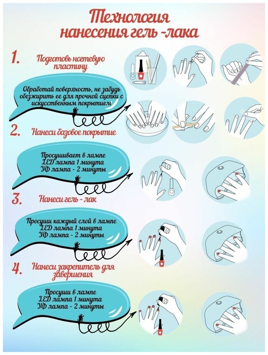 | Назначение | для маникюра / Лампа для маникюра; для сушки ногтей / для маникюра и педикюра; дизайн ногтей / наращивание ногтей; гель лак; гель лак шеллак |