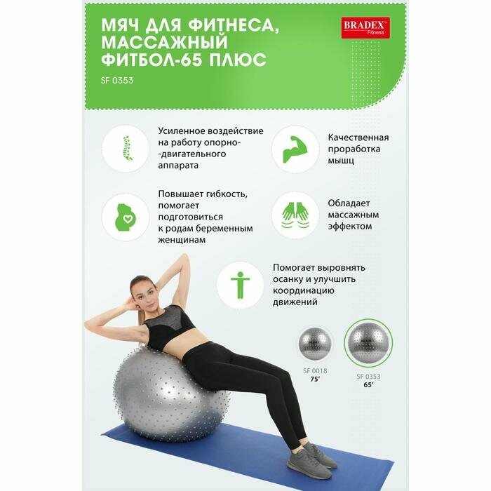 BRADEX Мяч для фитнеса Bradex, массажный «ФИТБОЛ-65 плюс» интересное: