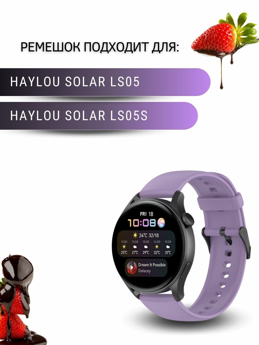 Купить Ремешок PADDA Dream для умных часов Haylou Solar LS05 (черная застежка), ширина 22 мм, сиреневый
