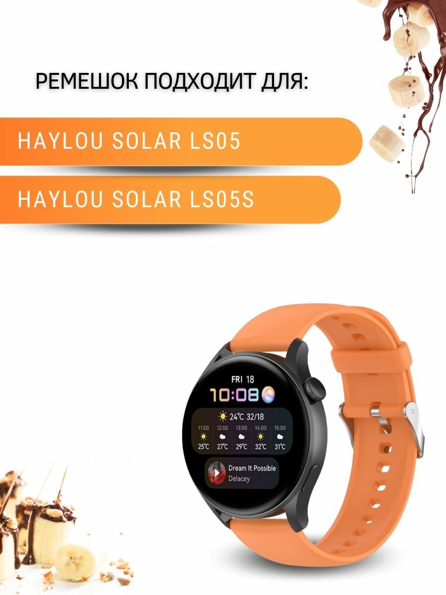 Купить Ремешок PADDA Dream для умных часов Haylou Solar LS05 (серебристая застежка), ширина 22 мм, оранжевый