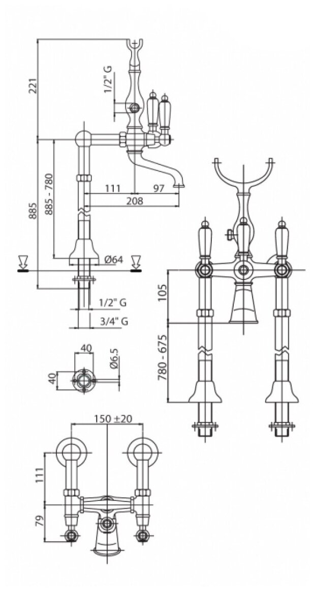 Купить Смеситель Cezares Diamond DIAMOND-VDP-01-Sw напольный