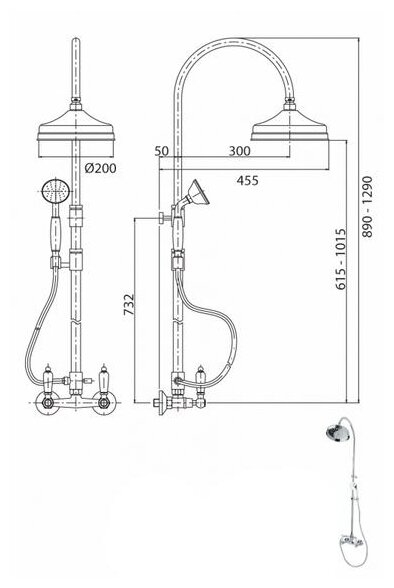 | Дополнительная информация | высота стойки для душа: 1290 мм; диаметр верхнего душа: 200 мм |