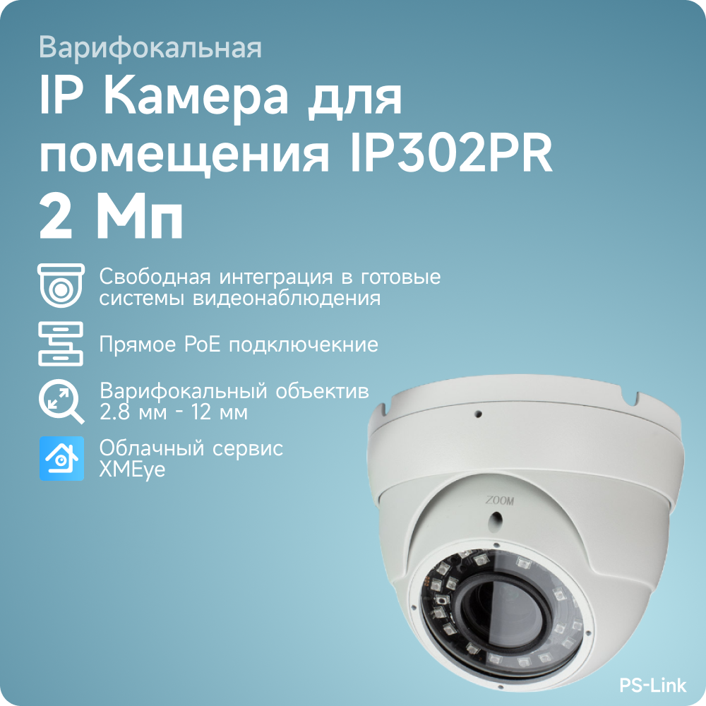 Купольная камера видеонаблюдения IP PS-link IP302PR матрица 2Мп с POE питанием и вариофокальным объективом интересное: