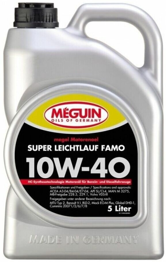 Ниже Вы можете прочитать отзывы на Megol Motorenoel Super Leichtlauf Famo 10W40 НС-синтетическое дизельное моторное масло 5л 4356, ознакомится с подробными характеристиками, посмотреть интересные обзоры и фотографии на Megol Motorenoel Super Leichtlauf Famo 10W40 НС-синтетическое дизельное моторное масло 5л 4356.