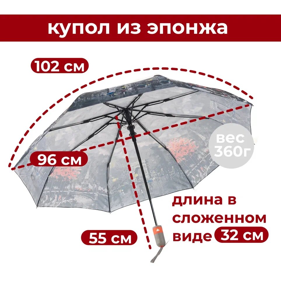 Зонт "Три Слона" женский №310-5, купол D=103 см, 10 спиц, суперавтомат бежево-черный