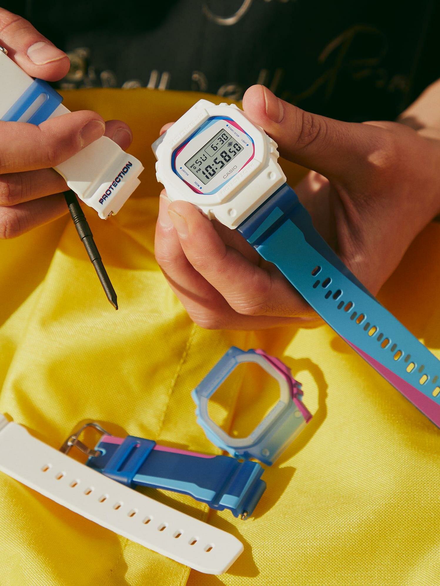 Наручные часы CASIO Наручные часы Casio G-SHOCK DWE-5600PR-2E, белый, синий