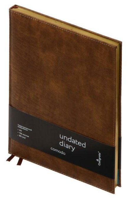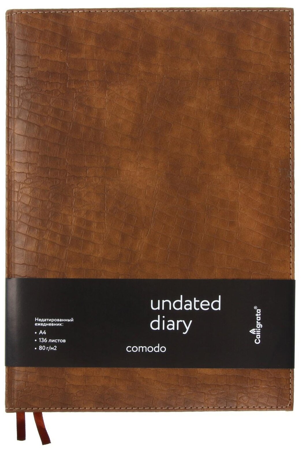 Ежедневник недатированный "Comodo" A4, 136 листов в клетку, кожзам, под матовую крокодиловую кожу, 2 ляссе, перфорированные уголки