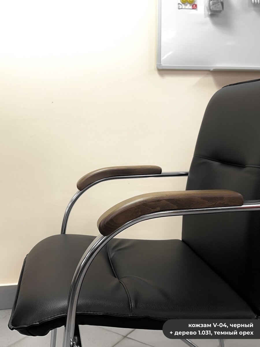 SAMBA (Самба) chrome V-04 / 1.031 Стул офисный для посетителей кожзам черный / дерево темный орех