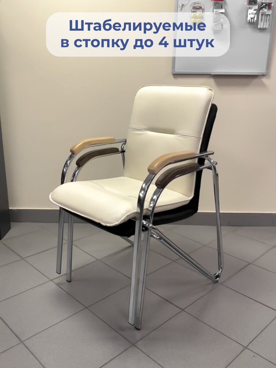 Комплект офисных стульев SAMBA (Самба) chrome V-18 / 1.007 2 шт кожзам бежевый / дерево бук