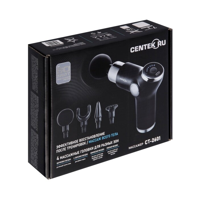 Купить Массажер для тела Centek CT-2601, перкуссионный, 4 насадки, 6 режимов, 1800-3200 об/мин