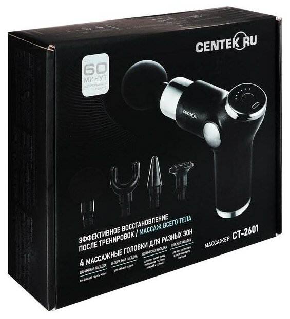 Массажер для тела Centek CT-2601, перкуссионный, 4 насадки, 6 режимов, 1800-3200 об - мин интересное: