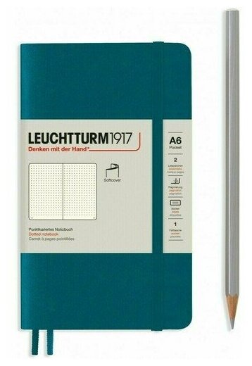 Записная книжка Leuchtturm Pocket, в точку, тихоокеанский зеленый, 123 страницы, мягкая обложка, А6 интересное: